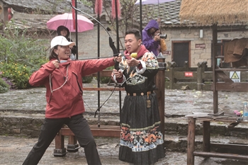 “我们希望打造的不只是一次徒步,更是一场沉浸式文化体验之旅。”贵州风景旅游发展有限公司云峰屯堡管理分公司市场营销部负责人张华锋介绍。景区以“徒步+在地文化”为核心,开展形式多样的活动丰富这场旅程的内涵:徒步者通过回答屯堡文化知识可获得“银票”,免费体验拓印、扎染、射箭等非遗项目;沿途的地戏表演,以古朴的唱腔和独特的面具艺术,展现着屯堡文化的顽强生命力。