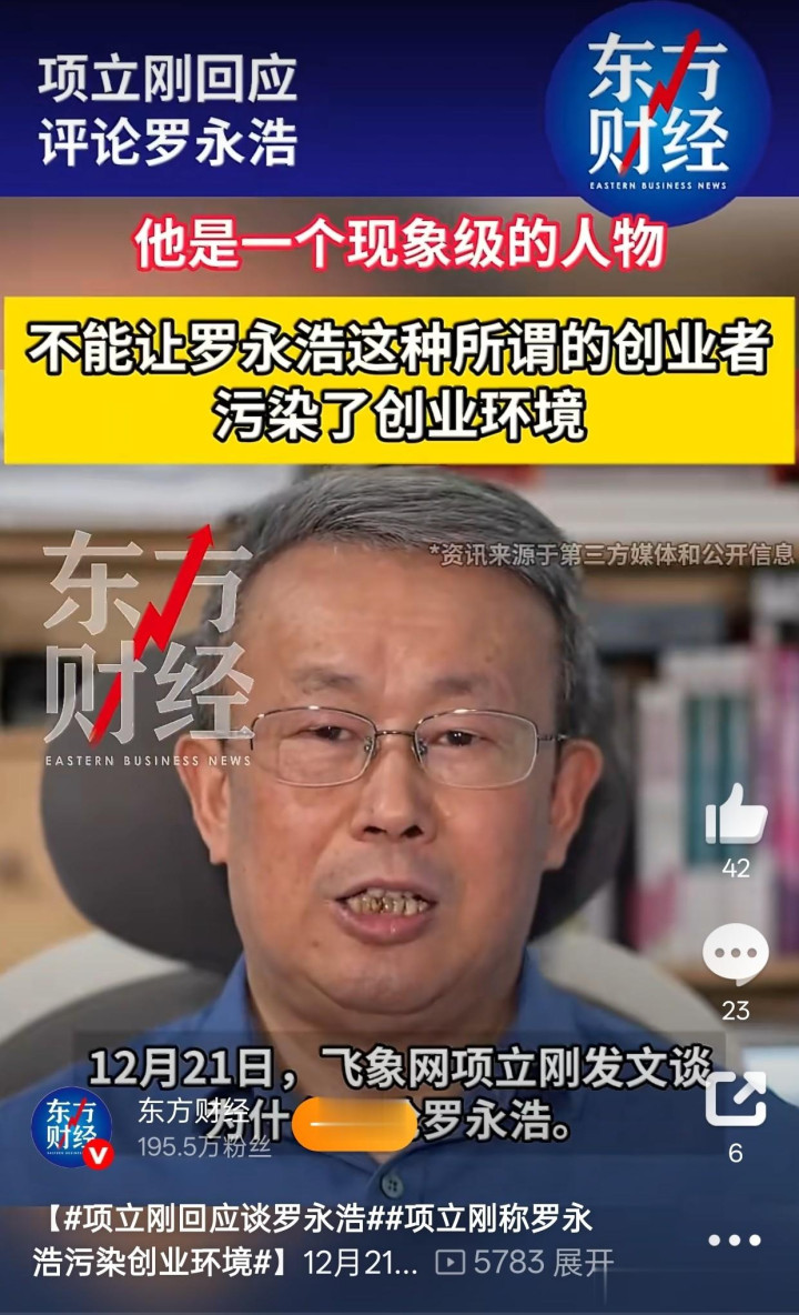 项立刚放话要把罗永浩写进MBA课程当反面教材,拟了6个争议标题,里面有《缺少爱国情怀和民族大义》《缺乏感恩之情》这类话,不少人吐槽这已经不是商业分析,是道德审判。项立刚说这么做是为了净化创业环境,警示投资人,可明眼人都看得到,他的新书《6G变局》正在预热。
