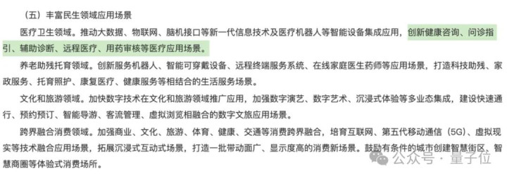 此外还指出,要“创新健康咨询、问诊指引、辅助诊断、远程医疗、用药审核等医疗应用场景”。